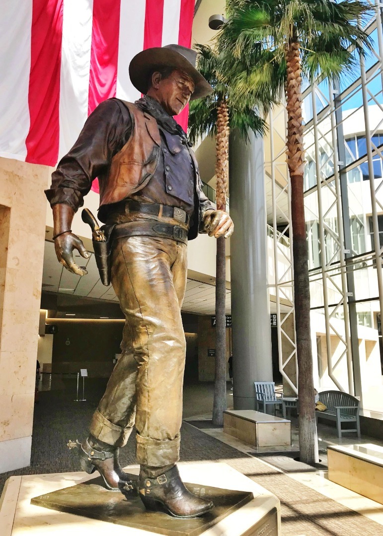 lui donneront un nouveau nom. C'était un homme solide qui se voulait l’incarnation du mâle américain porté sur l’honneur et l’amour de la patrie qui restera chère à son cœur, car c’était un Républicain assumé. On le lui reproche assez comme cela aujourd’hui, il y a même des documentaires spécialement réalisés par salir la mémoire de l’acteur par le portrait d’un homme prétendument trop patriote, ce qui n'est plus de bon ton, même aux USA. Une polémique existe aujourd'hui pour débaptiser un aéroport californien qui porte son nom et ôter la statue à son effigie car Wayne aurait été un odieux raciste. C’est dans l’air du temps, c’est aussi cela la cancel culture, salir ce qui a précédé, le détruire à tout prix. Que cela soit dit, je ne cautionne aucunement les reproches adressés à John Wayne, bien au contraire, à la lumière du XXIe siècle décadent, son patriotisme ne fait que renforcer mon affection pour lui. Si un homme n’est plus libre de ses convictions politiques et morales, ce n’est plus un homme libre. John Wayne est resté libre toute sa vie, il a bien connu les contestations américaines des années 60, il en a été la victime déjà à cette époque quand il prenait partie pour l’engagement au Vietnam par exemple. Il fut la cible des étudiants des campus américains en révolte contre le monde, créateurs de la contre-culture, grande sœur de la cancel culture. Cela n’a pas empêché John Wayne de rester droit dans ses bottes, de poursuivre sa carrière et de laisser au monde une œuvre considérable.