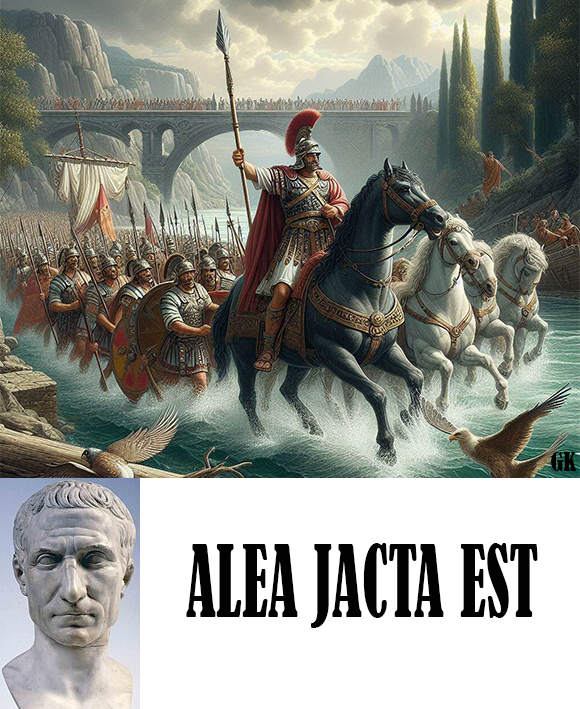La nuit du 10 au 11 janvier, la décision fut prise, il n’était pas question d’être humilié, de se retirer ou de se suicider, l’Histoire attendait le grand homme et c’est sur Rome qu’il fallait marcher pour écrire une page historique, affronter le Sénat et son pire ennemi du moment, Pompée. On prête à César cette autre phrase célèbre qu’il lança en franchissant le Rubicon, Alea jacta est, le sort en est jeté. En avant pour l’honneur et la conquête. Une formule lancée en latin pour la postérité, mais peut-être prononcée en grec ancien, langue dans laquelle l’exprimait également Jules César. Toujours est-il qu’il marcha sur Rome, vit ses ennemis prendre la fuite sans presque aucune résistance, le Sénat et Pompée fuirent pour la Grèce et César s’empara du pouvoir à Rome. Quelques années plus tard, en 44 avant Jésus Christ, nous connaissons son destin tragique, le complot fomenté par le Sénat et par certains de ses proches, son assassinat qui restera l’un des moments forts de l’Histoire de l’humanité. Mais César avait franchi le Rubicon quelques années auparavant, il avait ainsi scellé sa destinée.