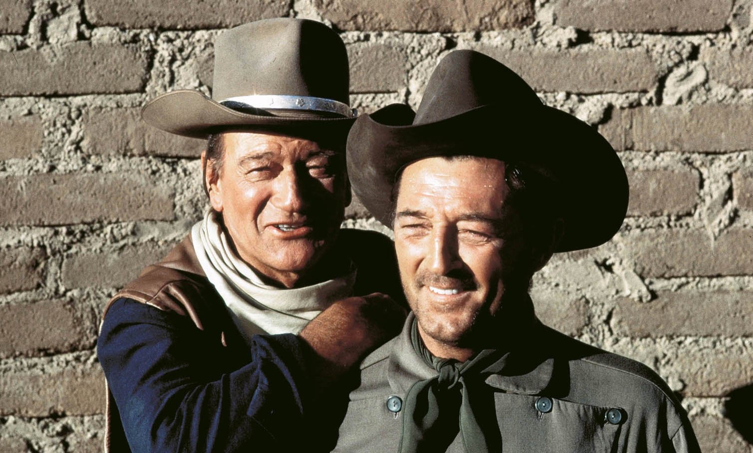 Robert Mitchum, le copain de Wayne, shérif de son état, en prise à son addiction à l’alcool et qu'on vient aider pour lui permettre de reprendre le contrôle de sa ville, remplace Dean Martin qui était très bien dans son rôle de shérif alcoolique dans Rio Bravo (sans doute un peu mieux que Mitchum, mais d’après moi, cela tient plus à l'écriture du rôle qu'à l'interprétation sans faille des deux acteurs). Martin composait un personnage plus sombre, plus réaliste que ne l'est celui de Mitchum qui n'est pas l'alcoolique totalement dépressif qu’était Martin. Le personnage de Mitchum réussit encore à sourire, c’est un blagueur optimiste, il est certes menacé par les évènements, mais il ne semble pas prendre totalement la mesure de la gravité de la situation, cela devrait au contraire le rendre vraiment nerveux, c’est peut-être le seul petit couac qui me dérange dans le film, mais cela reste crédible. Mitchum est aussi cool qu'à l'habitude, une belle performance d’acteur et une présence à l’écran épatante.