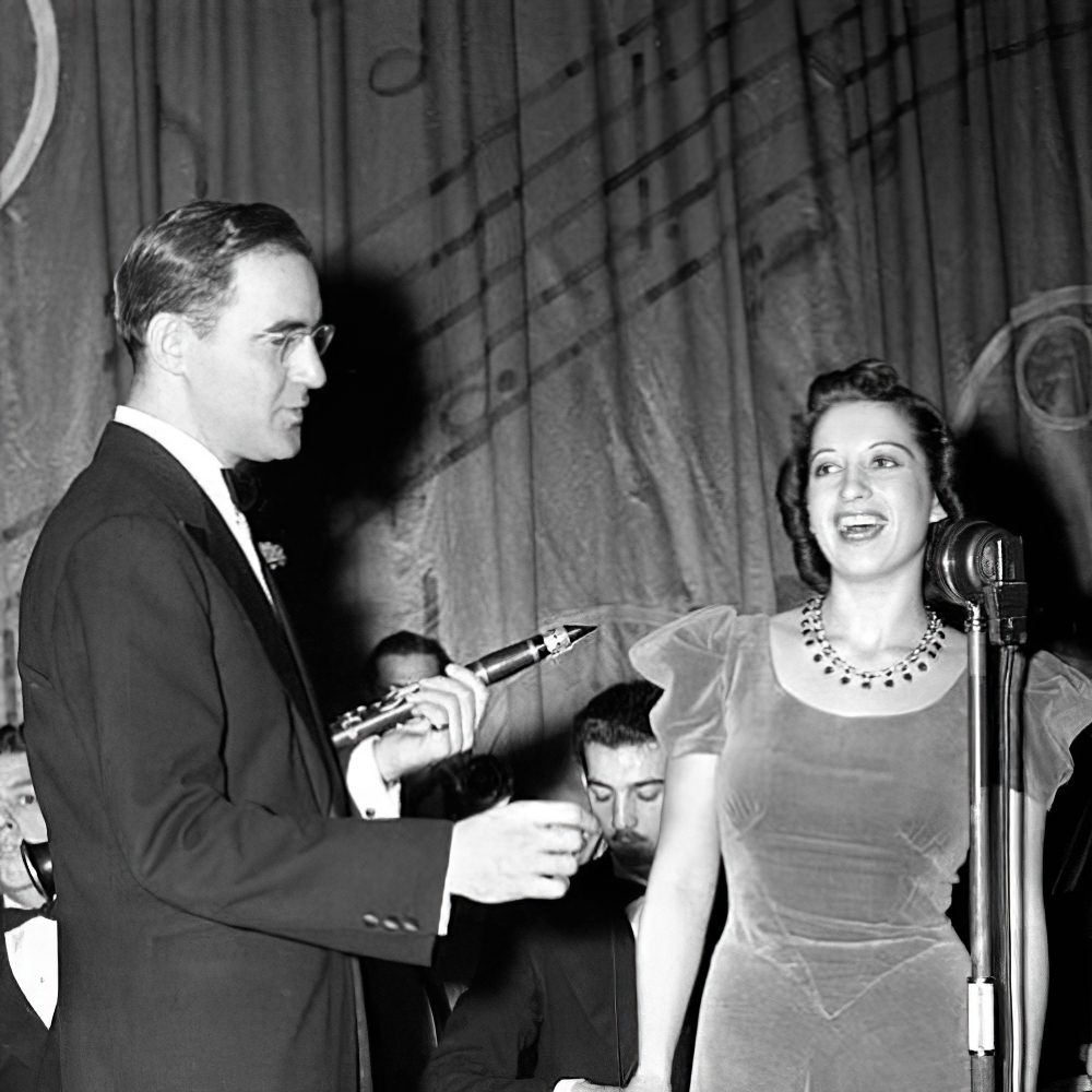 Goodman était précoce, à 14 ans il devint déjà un professionnel de la musique. A 16 ans, il quittera son Chicago natale pour gagner la Californie afin de rejoindre une formation de musiciens. Il s’installera plus tard à New York et en 1934 il se lancera, créant sa propre formation qui obtiendra rapidement un immense succès. Il ne lui faudra que quatre ans de plus pour devenir une véritable star du jazz et se propulser vers les sommets après avoir rempli de nombreuses salles de spectacle dont le fameux Carnegie Hall de New York. Sa maîtrise parfaite de la clarinette dont il était un virtuose lui offrit également les portes d’une carrière en solo qui lui apporta encore davantage de reconnaissance publique et professionnelles. Benny Goodman, c’était l’incarnation même du musicien surdoué qui ne laissait pas passer sa chance. En ce moment même, je suis plongé dans la musique des Big band, j’écris cette chronique, casque rivé sur mes oreilles en me régalant des airs de jazz joués par Benny Goodman mais aussi Harry James ou Artie Shaw. Ce que j’apprécie particulièrement, c’est de les entendre quand ils sont accompagnés par une chanteuse pour créer des chansons qui deviendront les références d’une époque et qui continuent encore à être jouées par les formations modernes. On ne compte plus les succès musicaux de cette époque, Deep in a dream, Moonray ou Bewitched,  autant de standards de jazz qui ont fait le tour du monde et on été sublimés par des musiciens de talents et des chanteuses à la voix sublime. Il jouera avec Alice Faye, Helen Ward, Peggy Lee, Ella Fitzgerald ou encore Mildred Bailey, et même si j'aime aussi beaucoup la voix d'Helen Ward je n’en retiendrai qu’une autre, car elle a ma préférence entre toutes, Helen Forest et sa voix cristalline.