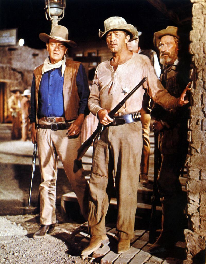 Robert Mitchum, le copain de Wayne, shérif de son état, en prise à son addiction à l’alcool et qu'on vient aider pour lui permettre de reprendre le contrôle de sa ville, remplace Dean Martin qui était très bien dans son rôle de shérif alcoolique dans Rio Bravo (sans doute un peu mieux que Mitchum, mais d’après moi, cela tient plus à l'écriture du rôle qu'à l'interprétation sans faille des deux acteurs). Martin composait un personnage plus sombre, plus réaliste que ne l'est celui de Mitchum qui n'est pas l'alcoolique totalement dépressif qu’était Martin. Le personnage de Mitchum réussit encore à sourire, c’est un blagueur optimiste, il est certes menacé par les évènements, mais il ne semble pas prendre totalement la mesure de la gravité de la situation, cela devrait au contraire le rendre vraiment nerveux, c’est peut-être le seul petit couac qui me dérange dans le film, mais cela reste crédible. Mitchum est aussi cool qu'à l'habitude, une belle performance d’acteur et une présence à l’écran épatante.