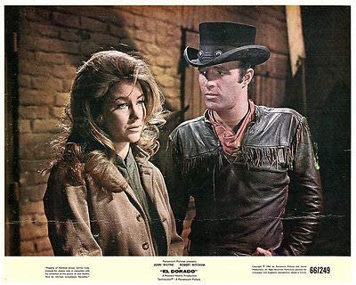 Le film est sorti en 1966, soit sept ans après Rio Bravo dont il s’inspire fortement puisque non seulement nous avons presque la même histoire, le même genre de personnages mais aussi le même réalisateur. Howard Hawks, le touche à tout d’Hollywood à qui l'on doit entre autres Scarface, La dame du vendredi, Le port de l'angoisse ou encore Les hommes préfèrent les blondes, s’est donc autorisé à retravailler la même matière artistique pour la peaufiner davantage et lui offrir plus d'éclat. La mise en scène classique de Hawks rend parfaitement hommage aux situations et à l'ambiance recherchée, les acteurs sont parfaitement dirigés, mention spéciale à James Caan encore tout jeune qui tient le rôle du kid de service et qui efface parfaitement la performance moyenne, et à mon avis sans âme, de Ricky Nelson le jeune cowboy chantant de Rio bravo. La scène qui introduit le personnage nommé Mississippi est un petit régal, l’arrivée de Caan dans un bar rempli de tueurs est un grand moment de duel insolite. John Wayne guettant la scène du coin de l'œil, prêt à intervenir, supervisant la tension dramatique qui s’installe. Je trouve que John Wayne n'a jamais été autant cowboy que dans El Dorado, il faut dire qu’il avait alors déjà plus de 35 ans de carrière. Il apparait puissant et cool, rassurant et sûr de lui, magnant son colt comme l'extension de son bras. Il marche dans la ville comme si elle lui appartenait, il marche dans l'Ouest encore sauvage comme s'il avait été créée pour lui seul, homme de l'Ouest portant l'honneur chevillé au corps, mais aussi faillible et c'est un aspect intéressant de son personnage qui n’existait pas dans Rio Bravo. Je trouve très intéressante la fêlure dont il est victime et qui le suit pendant tout le film. Wayne a rarement été aussi bon dans un western, à part peut-être dans L'homme qui tua Liberty Valance ou La rivière rouge, même si je le trouve grandiose dans son dernier film, Le dernier des Géants qui porte si bien son nom.